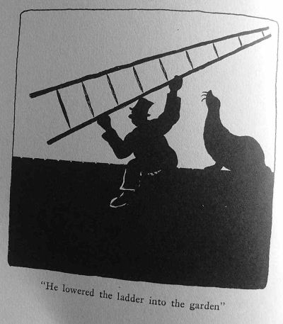 "He lowered the ladder into the garden"