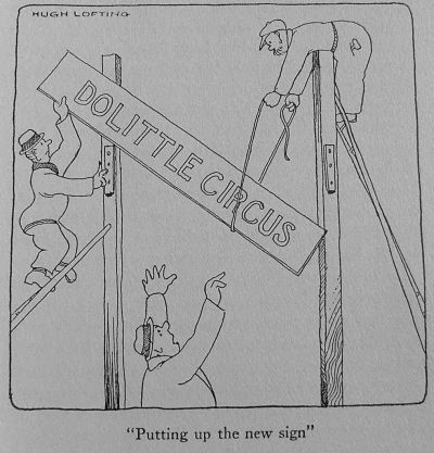 It was a day of great rejoicing for both the animals and the people of the circus when the Doctor took over the management. As soon as the news got around the enclosure tent-riggers, stable boys, performers--everybody, in fact, who was part of the establishment --came to the Doctor to congratulate him and to say how glad they were to be under his direction. With the stopping of the rain a general cheerfulness and hustle began. And the very first thing done was the taking down of the "Blossom's Mammoth Circus" sign over the main entrance and erecting in its place the "Dolittle Circus"-- a more modest title, but one which was to become far greater and better known than Blossom's had ever been.