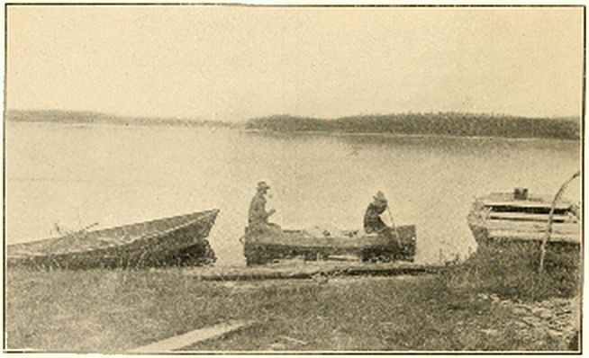 He was a jolly, friendly, courteous soul. In answer to my inquiry he said, excusing himself for his English, though it was very good English, that there were Indians at Big Point, four miles farther down the lake, and they might have a little flour, though he doubted it. At any rate he was going to camp there for the[246] night and we had better paddle down and join him.