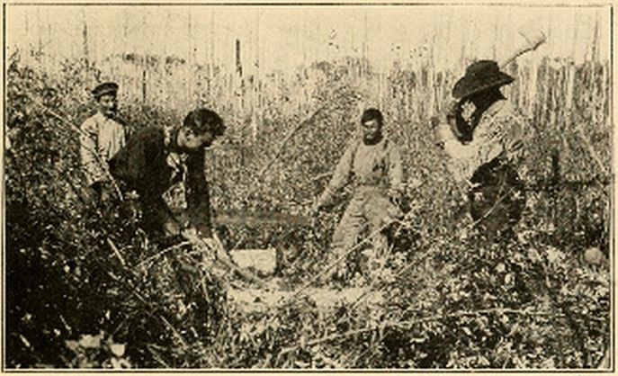 The reports about the railway were conflicting. It was said to be completed within forty miles of the Landing; some said trains were running[274] and some said work was abandoned for the season. Keeping out only a few necessities and the precious films which never left us, we shipped our baggage in care of the Hudson's Bay transport and set out in search of the rails. Natty Bumpus came with us. He allowed that he was a considerable walker when he got started. The fourth member of the party was a young fellow named Monteith, a settler near Fort St. John, who was on his way out to spend the winter.