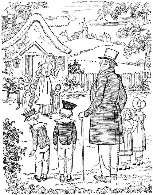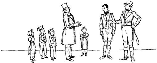 It did not take the little girls long to array themselves in their bonnets and tippets, nor their brothers to prepare themselves in a suitable manner for the excursion. When they were assembled in the hall Mr. Birdikin made his appearance from the library. John, the footman, who was in attendance, handed him his hat, gloves, and walking-cane, and the condescending word of thanks with which he was rewarded sent him back to the domestic quarters of the house in a thankful spirit at having taken service with so excellent a master, who seldom raised his hand in anger against a menial and had never been known to enforce his instructions by an oath. Small wonder then that Mr. Birdikin received willing service from those in his employ, who were assured of a comfortable home and such moral instruction as was suited to those of an inferior order, unless some serious delinquency should bring about their dismissal or illness render them no longer capable of performing the duties of their station.
