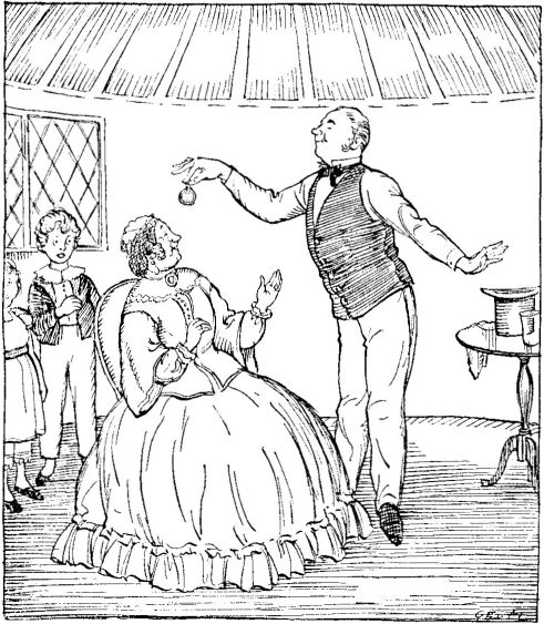 Arrived at the entrance to the Earl's mansion, Mr. and Mrs. Birdikin alighted, and, followed by the children, entered the stately precincts, there to be regaled with such refreshment as was fitting for the occasion. Mr. Birdikin was gratified to observe the children instantly seized upon by the Viscount Firebolt, the Honourable John, and the Lady Mary, for he felt that this exhibition of intimacy between his own offspring and that of his host could not but impress those of his neighbours who were witnesses of it. The Earl himself, a handsome and manly figure in his scarlet coat, came forward to greet him, and requested him, in humorous fashion, to take something to keep out the draught. Mr. Birdikin was about to engage him in a serious conversation about the Corn Laws, which were then exercising the minds of landowners, but he turned aside to greet others of his guests, and what was Mr. Birdikin's surprise to see that these were none other than Mr. Clott, the ironmonger, Mrs. Clott, and her niece, Miss Smith.
