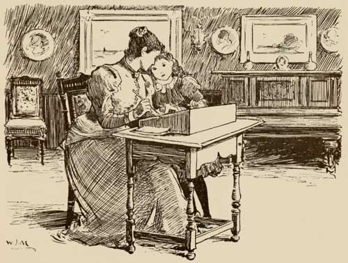 She was back in less than a minute, though she had found time to run up to her room and take something out of a drawer where she kept her treasures. Then she ran across to her mother's writing-table and slipped this something under the account-books, lying open upon it.