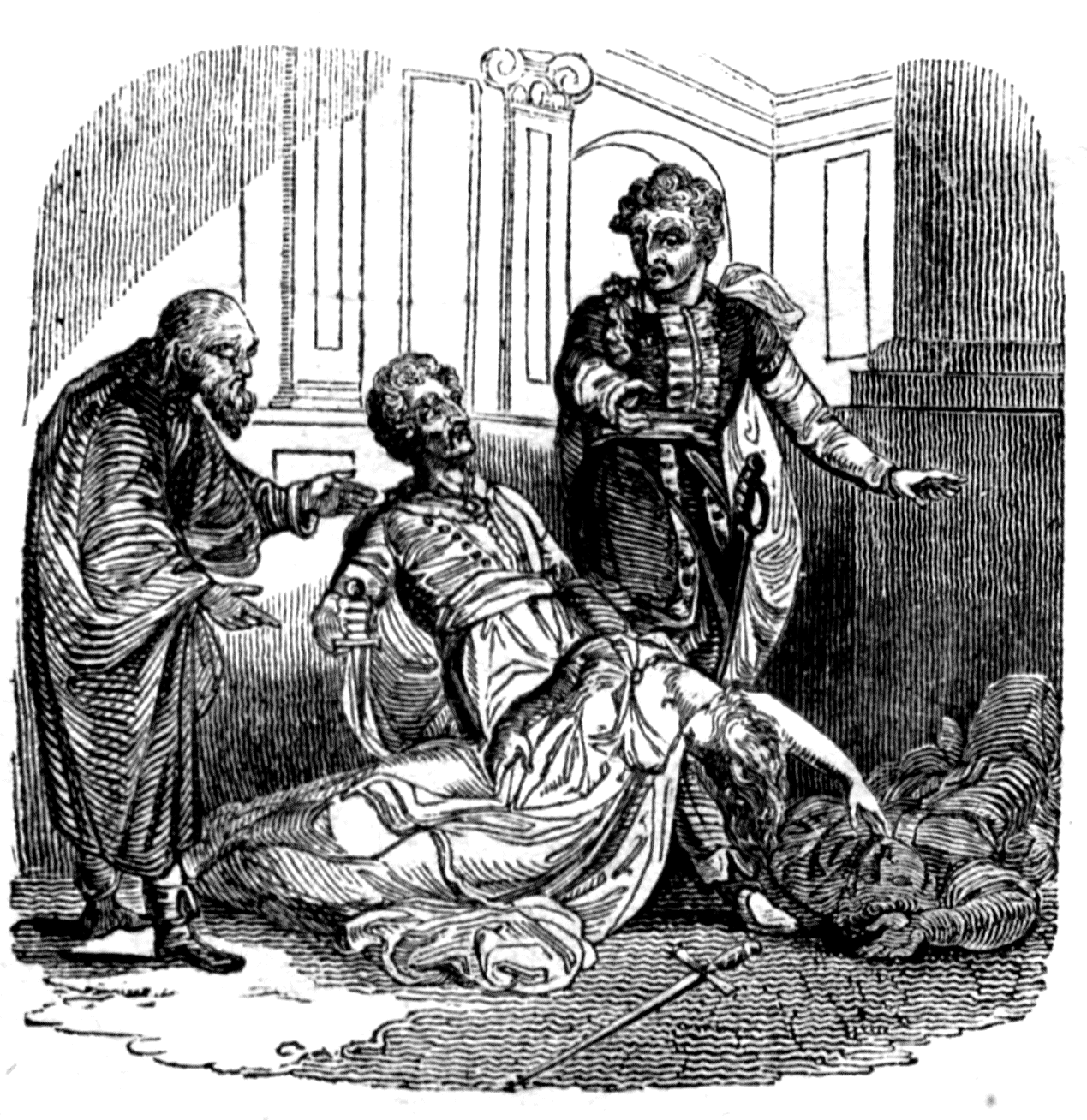 | Thus I find, rest, and shall complain no more.[stabs himself. |
