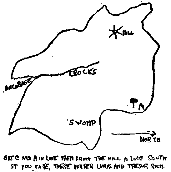 "You are free," shouted Jim down it. "Make your way to the north end of the island, and we'll try and rescue you later. Quick now, you two: we can't have them following us."
