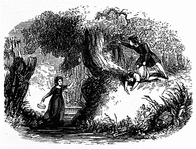 She was in breathless terror, not for her own danger, indeed, but for that which threatened the dear object of a mother's hopes and fears. Fortunately, both the Queen Margaret and her son were swift of foot, so that they were enabled to exert great speed when their path was open; and where it was tangled with briers and underwood, they forced their way through all obstructions, with as determined a spirit as if they had been foresters born. But ever and anon, the clash of steel, and the shouts of the combatants, reached their ears, and filled them with dismay. It grew fainter and fainter in the distance, as they fled. They were sometimes in utter darkness, and sometimes the glorious young moon gleamed like a silver lamp above their heads, through the[Pg 352] branches of the stately oaks, or feathery birch-trees under which they passed.