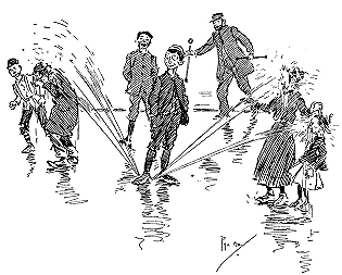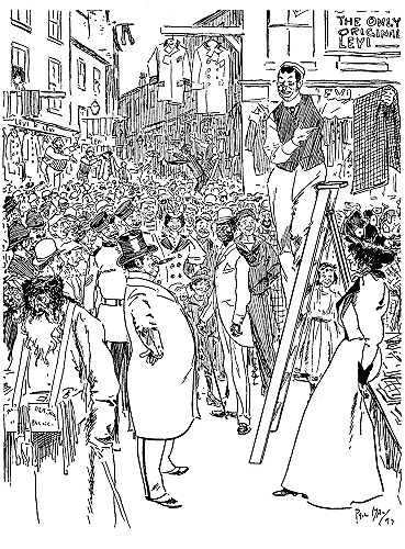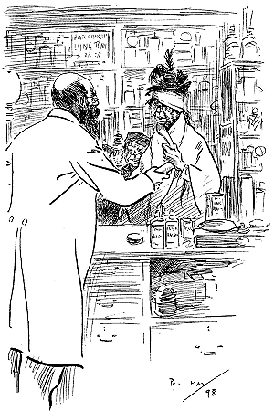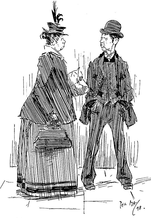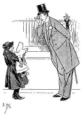 ![]() A REJOINDER 'Arry (whose ‘Old Dutch’ has been shopping, and has kept him waiting a considerable time: ‘Wot d'yer mean, keepin' me standin' abaat 'ere like a bloomin' fool?’ 'Arriet; ‘I cant' 'elp the way yer stand, 'Arry!’ Larger size |