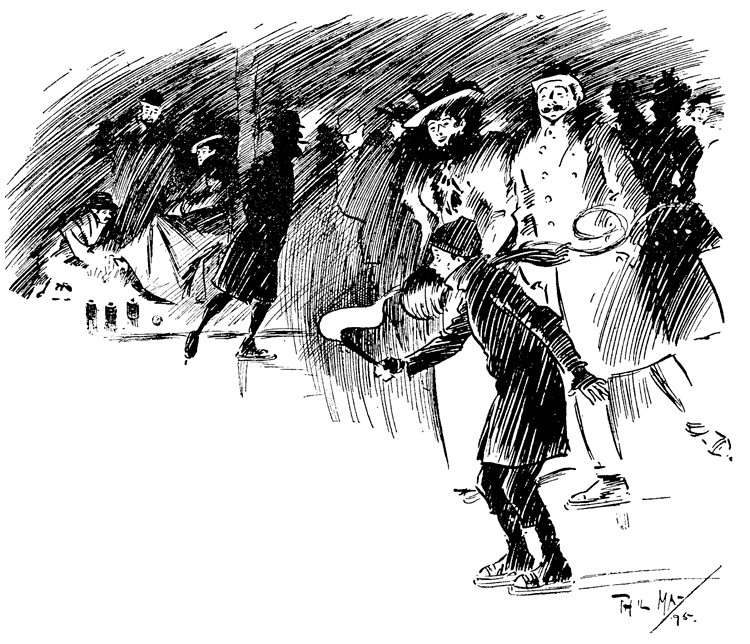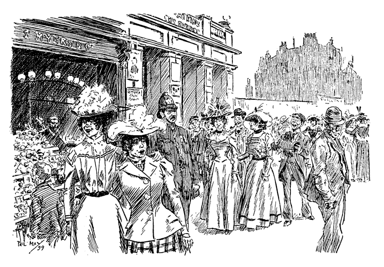 And now he fell on sadly hard times and touched the nadir of his ill fortunes. Nobody in the theatre or elsewhere had work for him, and for long he did no better by hawking drawings of stage celebrities and others. It seemed that he should have stayed in the Leeds train after all. He could not command any such luxury as a lodging, and slept in the open, anywhere he could, on the Embankment or under carts in Covent Garden, and was even reduced to begging his food. This bitter time no doubt left its mark on his slight physical constitution, and made him less able to resist the strains imposed on it in later and better times. But dawn broke at last, and his talent for drawing found him a friend. This was the proprietor of a photograph shop near Charing Cross, who was so much impressed by a drawing of Irving, Toole, and Bancroft that he published it as a print, bearing the date April 21st, 1884--the day before Phil's twentieth birthday. Although his venture was not a financial success, this most excellent photographer remained a good friend to the lad, and often gave him a much-needed meal. But the print, though it brought no profit to the photographer, was the means of lifting the artist out of the depths, at any rate temporarily; for it attracted the notice of a Mr Rising, of the Comedy Theatre. He introduced May to Lionel Brough, who bought the original drawing of the three actors, and sent the young artist with an introduction to the editor of Society, a weekly paper for which he did some portraits and caricatures. In the winter number for 1884 he had a double-page drawing, ‘The Seven Ages of Society’, containing no less than 178 excellent portraits. A drawing of Sir (then Mr) Squire Bancroft procured for him an introduction to Mr William Allison, editor of the recently started St Stephen's Review. Although this was not at that time an illustrated paper, a Christmas number, to be called The Coming Paradise, with drawings, was being planned, and there was hope that some of May's work might be utilized. Here, however, disappointment awaited him. The commission for the illustrations had been already placed, and there was no job available. May had been led to count on some definite help from this introduction, and in his weakened state of health the blow was just enough to turn the scale. He felt himself slipping back into the depths, and fell ill. Privation and disappointment and now illness made life so difficult a riddle that there seemed nothing for it but to abandon London and its hopes and go back to Leeds as best he could.
