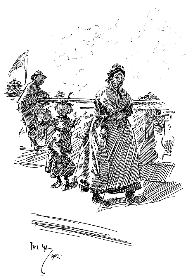 it is a difficult matter to make a small and representative selection of Phil May's drawings. There are so many of them, and they are all so good. There are many hundreds of others which I should like to have printed, but the final selection has been made by the editor and publishers. A select list of works containing illustrations by Phil May will be found in annex. Acknowledgments are made in each instance to the kind people who lent me drawings or gave permission for reproduction. To them all my best thanks. In some few cases it has been impossible, despite determined efforts, to trace the present owners of copyrights of published drawings, and I plead humbly for their forgiveness. J. T.