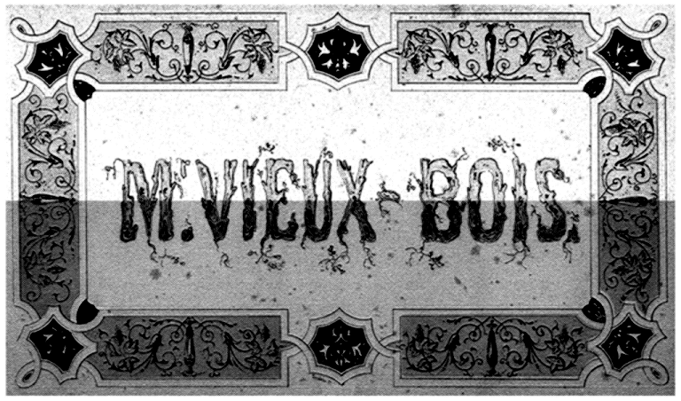 | Tout à coup, Mr. Vieux-Bois a l'ivresse d'apercevoir l'objet aimé à une croisée, de l'autre côté de la rue. | S'étant livré à un saut de joie bien excusable, Mr. Vieux-Bois enfonce la toiture et disparaît. |