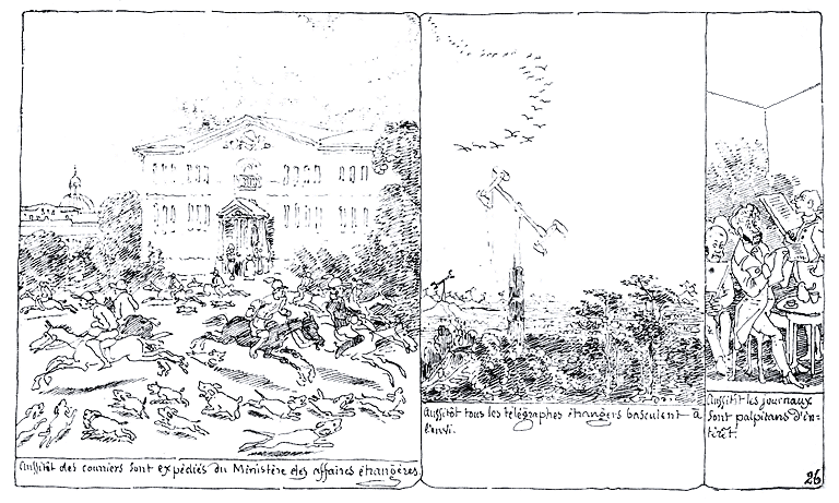 | Aussi, toutes les lignes télégraphiques jouent à l'envi. | Et les courriers se croisent. |