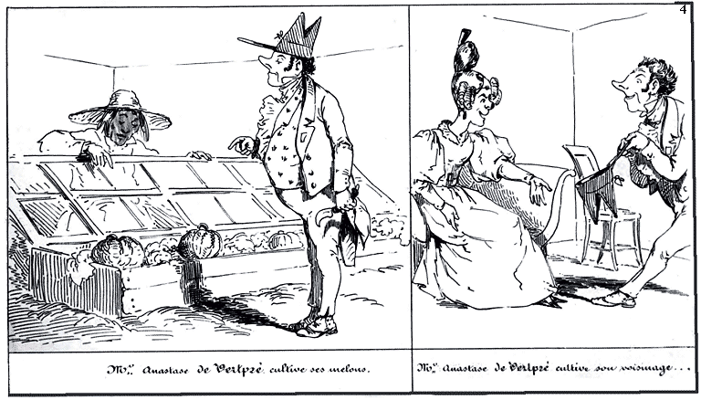 | Mr. Anastase de Vertpré cultive ses melons. | Mr. Anastase de Vertpré cultive son voisinage. |