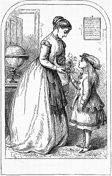 "Nurse, it shall be my own flower," said the little girl; "and I will make a pretty garland of it, to hang over my own dear mamma's picture. Rosette says she will show me how to tie the flowers together; she has made me a pretty wreath for my doll's straw hat, and she means to make her a mat and a carpet too."