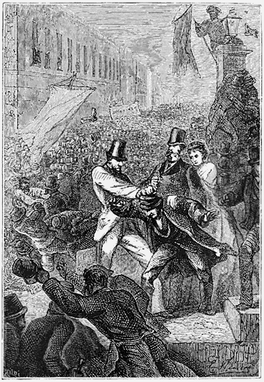 Aussi, le samedi soir, y avait-il foule dans Pall-Mall et dans les rues voisines. On eût dit un immense attroupement de courtiers, établis en permanence aux abords du Reform-Club. La circulation était empêchée. On discutait, on disputait, on criait les cours «du Phileas Fogg», comme ceux des fonds anglais. Les policemen avaient beaucoup de peine à contenir le populaire, et à mesure que s'avançait l'heure à laquelle devait arriver Phileas Fogg, l'émotion prenait des proportions invraisemblables.