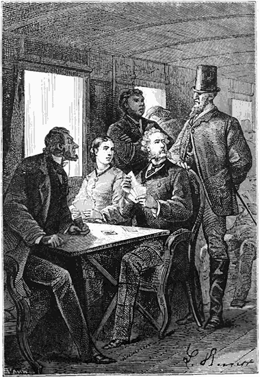Les cinq collègues se regardaient. On peut croire que les battements de leur cœur avaient subi une légère accélération, car enfin, même pour de beaux joueurs, la partie était forte! Mais ils n'en voulaient rien laisser paraître, car, sur la proposition de Samuel Fallentin, ils prirent place à une table de jeu.