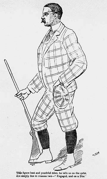 [3] "Gillie" Farquhar is a brother of Lord Farquhar, once a smart society man who knew everybody and whom everybody knew. He travelled and then went on the stage. His conversation was amusing, and his individuality was marked by a keen sense of humour. Arthur Cecil and he were great friends, and as they both became stout were called by their friends "the brothers bulge."