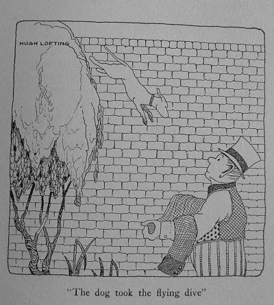 John Dolittle was arranging search parties to go out and hunt when two policemen came to the circus and put him under arrest. He was charged, they told him, with keeping wild animals at large and endangering the public. Furthermore, the lion, it seemed, had broken into a chicken yard and eaten all the chicken. As the Doctor was marched through the town to the jail the owner of the chickens followed him, calling him names and telling him how much he owed him.