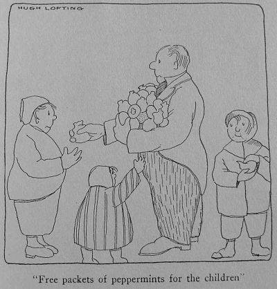 So afternoon tea for all visitors became an institution. And shortly after another one was added: that of free packets of peppermints for the children. And what the Doctor prophesied came true. In one town where the Dolittle Circus crossed paths with another, a much bigger show, the Doctor's concern did twice the business that the other one did, because the people knew that they'd be given tea and treated honestly and politely.