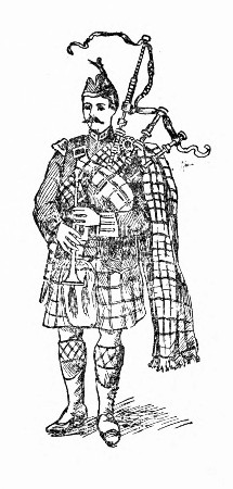 "On the stroke of the hour of midnight, the clear, clarion notes of a trumpet thrilled all hearts present. A panel in the wainscotting of the lower dancing-room flew open as if by magic, and out jumped a jaunty little trumpeter with a slashed and decorated jacket and the busby of a hussar. The blast he blew rang in tingling echoes far and wide, and[Pg 184] a second later the weird piping and drumming of an unfamiliar music were heard in a remote part of the barracks.