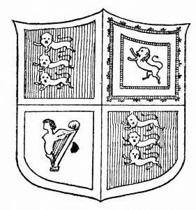 Over an archway in the picture gallery[Pg 213] is an enormous oil painting, dark with age, of the British Coat of Arms, which, it is whispered, was brought over hurriedly from New York during the American Revolution.