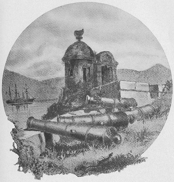 The Spanish government was goaded into making still greater efforts to recover its lost possession. The governors of Havana, Santiago, Porto Rico, and San Domingo were all instructed to send immediate assistance to Yssasi, who clung obstinately to his foothold in the recesses of the hills. The viceroy of Mexico was given supreme control of these operations. Two small squadrons of ships were equipped, conveying 950 soldiers with provisions and other supplies, which were safely landed at the mouth of the Rio Nuevo on the northern shore of Jamaica some time in May, 1658. Yssasi had been instructed to make every effort to hold his ground. The number of soldiers actually landed was reported to be only 557 of all ranks, under command of Sargento-Mayor Don Alvaro de Rasperu, formed into thirty-one companies of foot. They began at once to fortify a strong position on a steep, rocky hill overlooking the bay, now known as "the Cliff", which they called the Camp of the Conception. Yssasi joined them with his followers and there they remained undiscovered and[14] unmolested for twelve days, when some English warships, cruising along the coast, observed three strange sail anchored near the land but were prevented by calms and variable winds from attacking them closely. In the night these Spanish ships made their escape unseen, having landed six small iron guns for the defence of the camp. When this news reached D'Oyley at Cagway, he lost no time in assembling a council of war which began a discussion, he wrote, "whether it were most advantageous to assault them presently, or let them partake of the distemper and want of the country; and when sickness weakened them to attempt them then, though much might have been and was urged, how invaders were to be used with delayes, &c., the exceeding desire of the officers and soldiers to be doing with them cut off all debates and termed a sudden resolution to fall on them before they were fortified."[22]