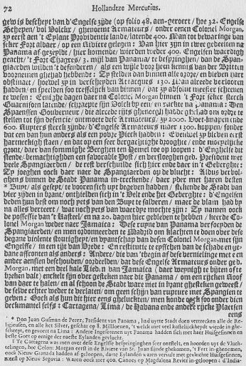 [578] "Inglese de Jamayca, debaxo la direccion del intrepido y valeroso Juan Morgan; que se habria adquirido mayor honor por su sagaz dispocion y atrevimiento, si su tiranica crueldad cometido contra los baxelos, no hubria borrado todo el lustre de su gloria." Piratas de la America, Fourth Edition, Madrid, 1793, preface, p. vi.