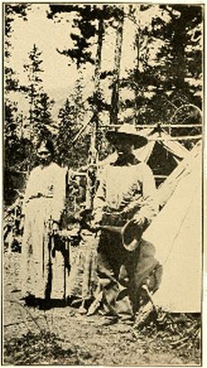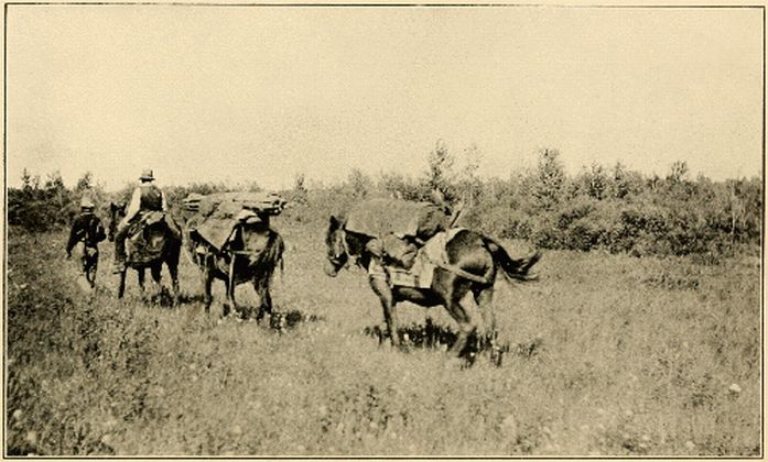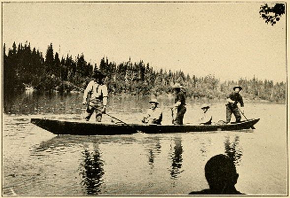Our plan was to start from the end of the Grand Trunk Pacific Railway west of Edmonton, and have our outfit transported by wagon or pack pony through the Yellowhead Pass alongside the railway construction. We could not find out for certain if a wagon road had been completed through the pass, and we therefore took a collapsible boat, that could be rolled up and packed on a horse's back.