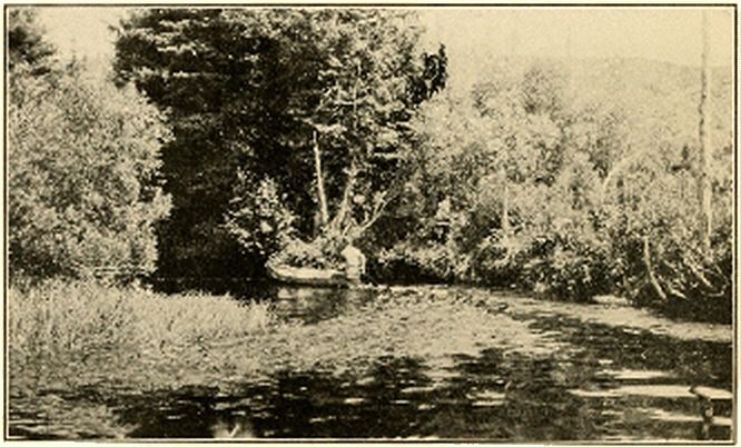 It became very hot as the day wore on, and we progressed down the shore with a discouraging slowness. The rapid streams we had been descending had spoiled us for slack water, and after the slender Serpent our old Blunderbuss was as hard to push as a washtub. Late in the afternoon we went ashore for dinner at the mouth of a creek, that we were compelled to identify from the map as Shaw's Creek, only eighteen miles from our starting-place. Eighteen goes into seventy-five four times with something over. This was disheartening.