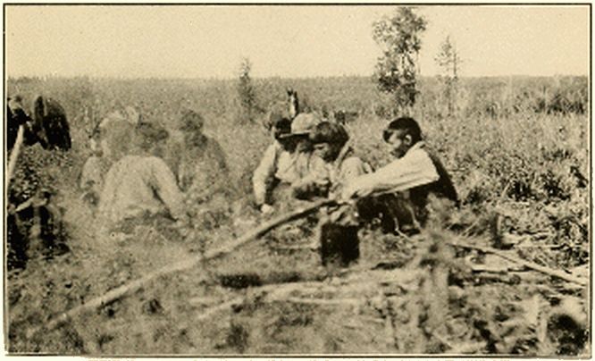 He was a jolly, friendly, courteous soul. In answer to my inquiry he said, excusing himself for his English, though it was very good English, that there were Indians at Big Point, four miles farther down the lake, and they might have a little flour, though he doubted it. At any rate he was going to camp there for the[246] night and we had better paddle down and join him.