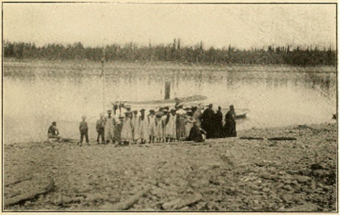 The rapid we had heard proved to be nothing more than a riffle where the Sauteaux comes into the Lesser Slave. We reached Sauteaux landing at ten o'clock, where we found the little steamboat tied up to the bank at the end of her run. There are twenty-five miles of rapids below, around which the passengers are transferred by stage to the larger boat, which runs on the Athabasca. We learned that our friends had gone on by stage that morning, so they were still but an hour or two in advance of us.