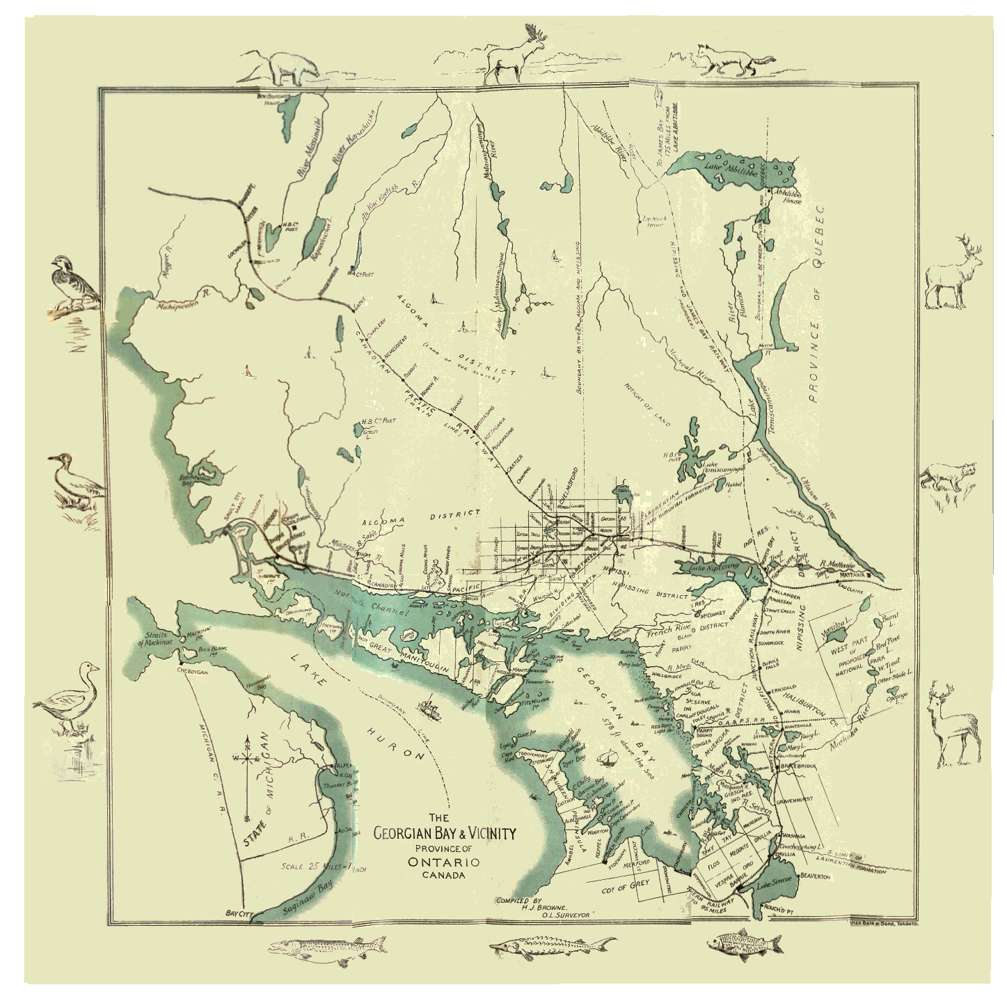 It cannot be doubted that the Georgian Bay is of strategic interest from a military point of view. It is on the water route through the upper lakes and has now the Canada Pacific Railway at no great distance from its easterly and northerly shores. The Manitoulin group shields it and the North Channel from exposure. Its islands and inlets afford cover and concealment for vessels and there are no better sailors than the hardy fishermen upon these waters.