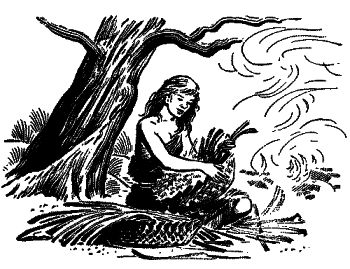 Kar and two young apprentice fire-makers had by now brought a great load of wood and piled it by the night fire. It leaped high, spreading welcome warmth over the hungry people who huddled around it. Kar passed his hand over the fire and it glowed blood-red. Hawk watched, and wondered.