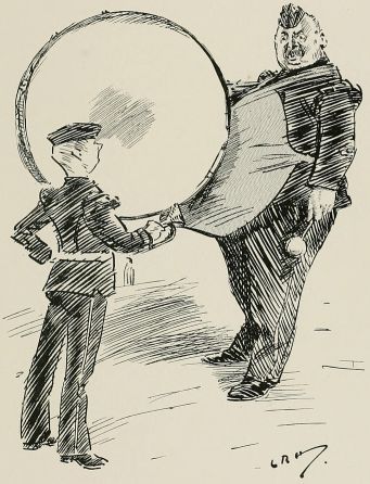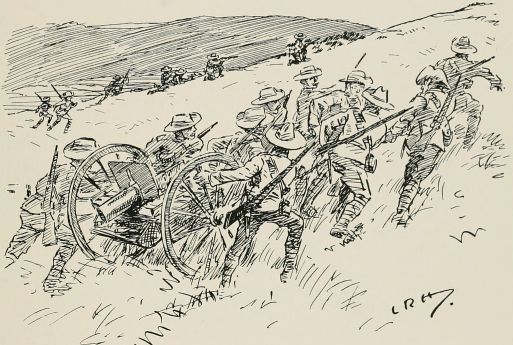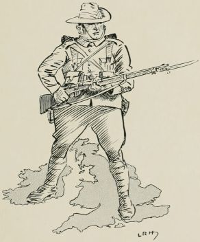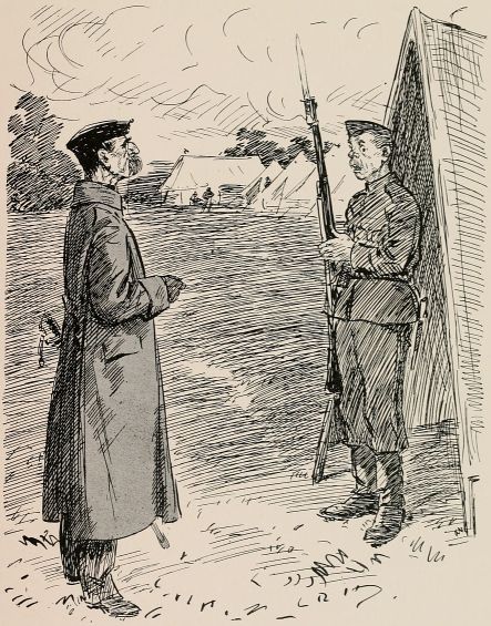 "'Well,' ses the General, 'takin' into consideration that, if the Volunteers is ever wanted, they'll be wanted in a hurry, I should suggest that they might be advantageously employed in fitting themselves for the task.' 'Excellent,' ses the Gov'mint; 'why ever wasn't it thought of before? Go on,' ses he. 'They should be trained,' ses the General, 'to the use of the most modern weapons, an' practised in the lessons which we 'ave learned by bitter experience, to the end that, in the event of an invasion, threatened or actual, every unit shall be able to take the field without delay, sufficiently organised an' equipped to carry it through a short campaign.' 'Marvellous!' ses the Gov'mint. 'It's my dream realised. I will be interviewed on the matter to-morrow.' 'Of course,' ses the General, 'this will undoubtedly entail a certain amount of hextra expense.' 'Not another word!' ses the Gov'mint. 'All bets is off! Train 'em, give 'em transport, stand 'em on their 'eads, or teach 'em to sing; anything you like as long as it don't cost anything. Take a fresh start,' ses 'e.