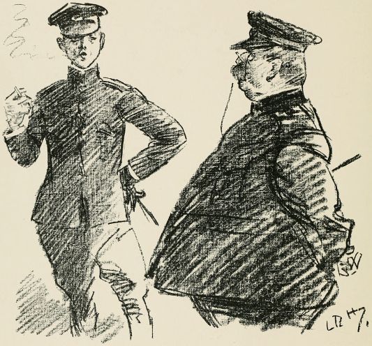 "Intelligence in the obeyin' of commands," said "Tiny," "is of the utmost importance. If you are with an off'cer as knows 'is work you may close yer eyes and rest in peace, an' just do as you're told without worryin'. But they differ. There's that little devil with the eyeglass now, if 'e's takin' you an' you see me convenient to 'is elbow you can be easy in your minds an' jump to the word, but if, by misfortune, 'e's out there alone, keep yer wits about yer an' step off slow, for 'As you were' an' 'Mark time' is favourite commands with 'im.'"