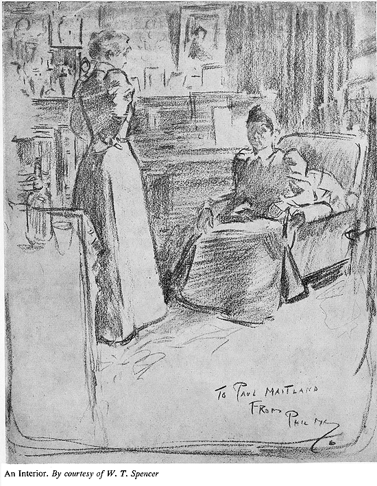 And now he fell on sadly hard times and touched the nadir of his ill fortunes. Nobody in the theatre or elsewhere had work for him, and for long he did no better by hawking drawings of stage celebrities and others. It seemed that he should have stayed in the Leeds train after all. He could not command any such luxury as a lodging, and slept in the open, anywhere he could, on the Embankment or under carts in Covent Garden, and was even reduced to begging his food. This bitter time no doubt left its mark on his slight physical constitution, and made him less able to resist the strains imposed on it in later and better times. But dawn broke at last, and his talent for drawing found him a friend. This was the proprietor of a photograph shop near Charing Cross, who was so much impressed by a drawing of Irving, Toole, and Bancroft that he published it as a print, bearing the date April 21st, 1884--the day before Phil's twentieth birthday. Although his venture was not a financial success, this most excellent photographer remained a good friend to the lad, and often gave him a much-needed meal. But the print, though it brought no profit to the photographer, was the means of lifting the artist out of the depths, at any rate temporarily; for it attracted the notice of a Mr Rising, of the Comedy Theatre. He introduced May to Lionel Brough, who bought the original drawing of the three actors, and sent the young artist with an introduction to the editor of Society, a weekly paper for which he did some portraits and caricatures. In the winter number for 1884 he had a double-page drawing, ‘The Seven Ages of Society’, containing no less than 178 excellent portraits. A drawing of Sir (then Mr) Squire Bancroft procured for him an introduction to Mr William Allison, editor of the recently started St Stephen's Review. Although this was not at that time an illustrated paper, a Christmas number, to be called The Coming Paradise, with drawings, was being planned, and there was hope that some of May's work might be utilized. Here, however, disappointment awaited him. The commission for the illustrations had been already placed, and there was no job available. May had been led to count on some definite help from this introduction, and in his weakened state of health the blow was just enough to turn the scale. He felt himself slipping back into the depths, and fell ill. Privation and disappointment and now illness made life so difficult a riddle that there seemed nothing for it but to abandon London and its hopes and go back to Leeds as best he could.
