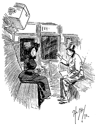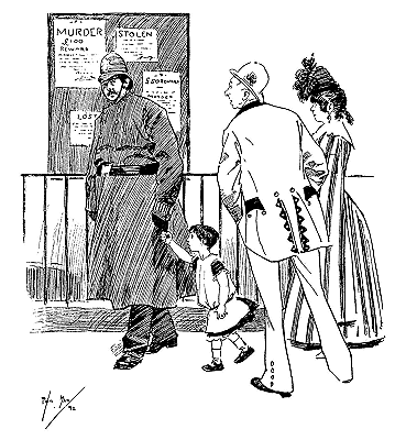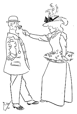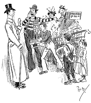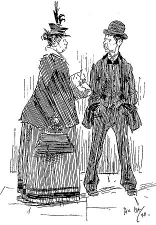 ![]() A REJOINDER 'Arry (whose ‘Old Dutch’ has been shopping, and has kept him waiting a considerable time: ‘Wot d'yer mean, keepin' me standin' abaat 'ere like a bloomin' fool?’ 'Arriet; ‘I cant' 'elp the way yer stand, 'Arry!’ Larger size |