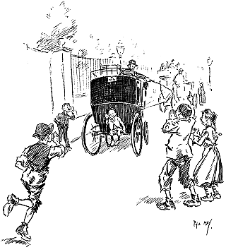 Many of the earlier Punch artists--Doyle, Keene, Leech and Sambourne among them--had been first presented to the public in its own pages. Phil May, with Bernard Partridge and Raven-Hill, belonged to a later generation, who had made their reputation elsewhere before joining the staff. Little or nothing in the way of official recognition came to any of the band, although John Tenniel and, later, Bernard Partridge received the honour of knighthood. In 1896, after the publication of Gutter-snipes, May was elected R.I., the only contemporary black-and-white artist who shared the distinction with him being Hugh Thomson. Lord Leighton, then President, who greatly admired May's work, wished to see him proposed for election as Associate of the Royal Academy; but Leighton's death early in 1896 ended the idea, for no other academician of that time had the temerity to adopt it.