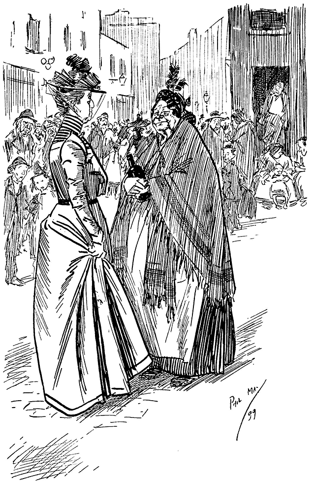 ![]() MALAPROPOS Mrs Snobson (who is doing a little slumming for the first time and wishes to appear affable, but is at a loss to know how to commence conversation): ‘Town very empty!’ Larger size |