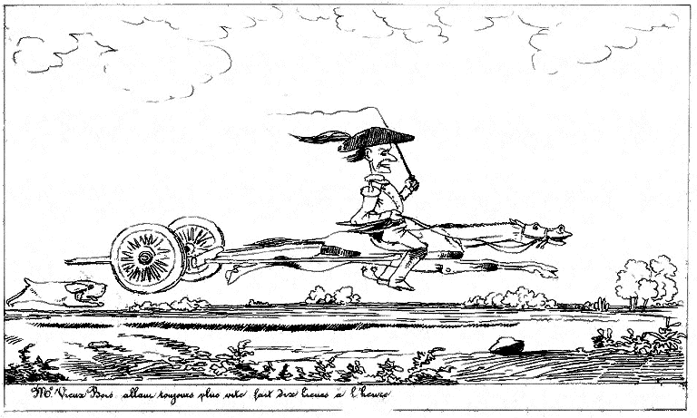 Mr. Vieux-Bois, allant toujours plus vite, fait dix lieues à l'heure.