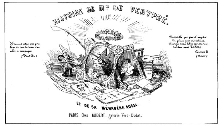 | Mr. (Anastase) de Vertpré, ayant consacré une partie de son existence au service de l'état, juge à propos de quitter la capitale pour se livrer aux douceurs de la vie champêtre, | sa ménagère le suit. |