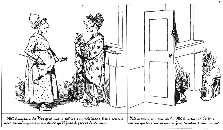 | Mr. Anastase de Vertpré cultive ses melons. | Mr. Anastase de Vertpré cultive son voisinage. |