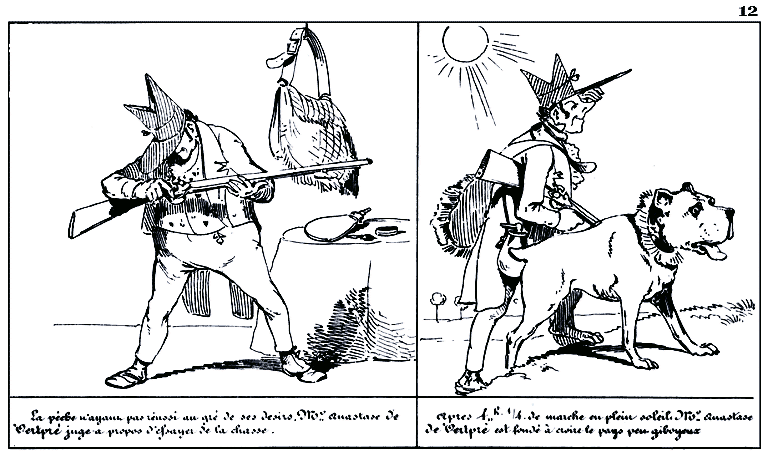| Au moment d'ajuster un magnifique lapin, Mr. Anastase de Vertpré met le pied dans un guêpier. | Ce qui altère son physique et lui fait perdre le fil de ses idées. |