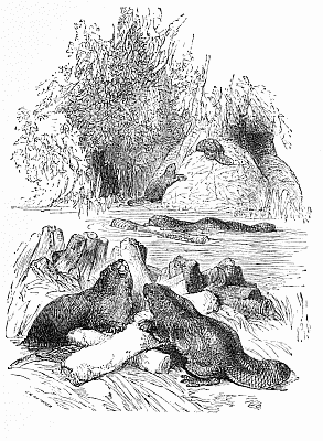 "No, my lady," she replied, "this is not a young beaver; a beaver is a much larger animal. A beaver's tail is not covered with fur; it is scaly, broad, and flat; it looks something like black leather,[Pg 10] not very unlike that of my seal-skin slippers. The Indians eat beavers' tails at their great feasts, and think they make an excellent dish."