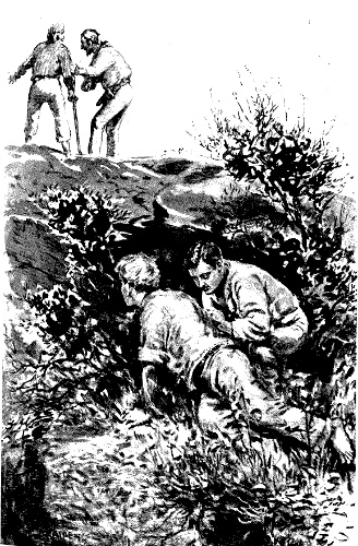 Dashing along the shore the chums raised the alarm that Mendoza was escaping. Captain Holbaek was quickly upon the scene, followed by Mr. Heatherington. In obedience to an order from the former half a dozen canoes were manned and started in pursuit.