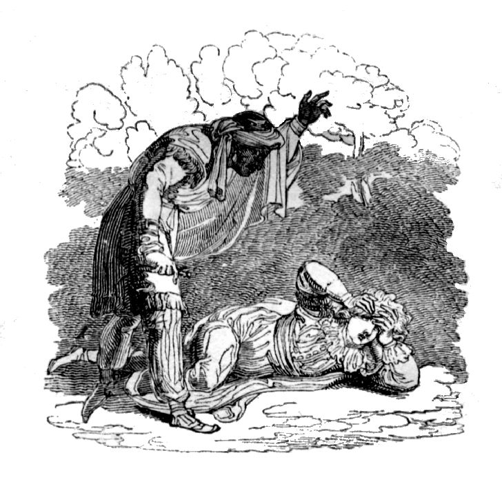 "Don Alonzo, a Spanish nobleman, had a beautiful and virtuous wife, with whom he had lived some years in great tranquillity. The gentleman, however, was not free from the faults usually imputed to his nation; he was proud, suspicious, and impetuous. He kept a Moor in his house, whom, on a complaint from his lady, he had punished for a small offence with the utmost severity. The slave vowed revenge, and communicated his resolution to one of the lady's women, with whom he had lived in a criminal way. This creature also hated her mistress, for she feared she was observed by her; she therefore undertook to make Don Alonzo jealous, by insinuating that the gardner was often admitted to his lady in private, and promising to make him an eye witness of it. At a proper time, agreed on between her and the Morisco, she sent a message to the gardner, that his lady, having some hasty orders to give him, would have him come that moment to her in her chamber. In the mean time she had placed Alonzo privately in an outer room, that he might observe who passed that way. It was not long before he saw the gardner appear. Alonzo had not patience, but following him into the apartment, struck him at one blow with a dagger to the heart; then dragging his lady by the hair, without inquiring farther, he instantly killed her.